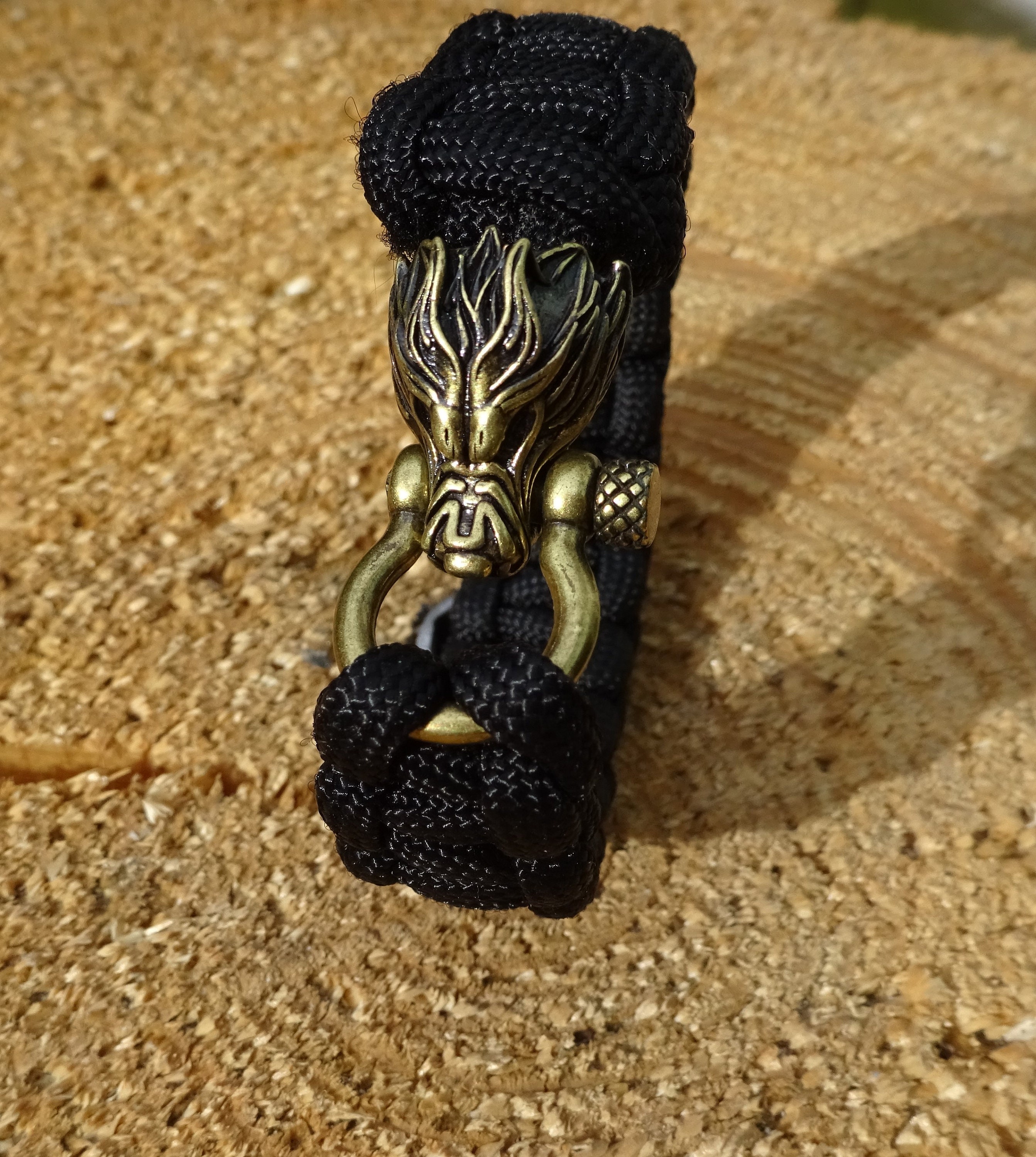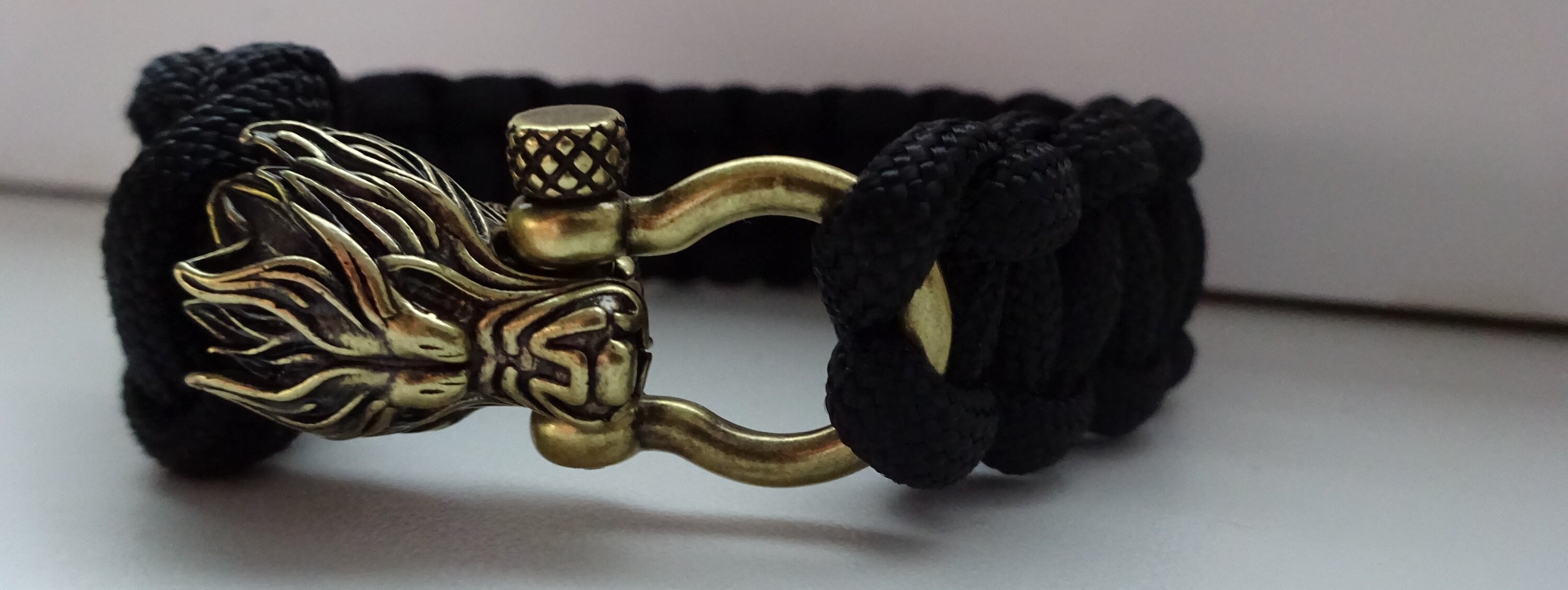 A rustic paracord bracelet handmade just for you. The buckle is the wolf's head, which gives the whole bracelet this wild look.